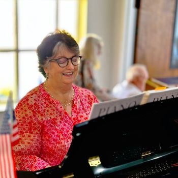 performance. After being a stay-at-home parent during her children's early years, Sarah enjoyed many years of musical work as a collaborative pianist in high schools and colleges in the Kansas City area. She taught piano at Maple Woods Community College and at William Jewell College's Community School of Music, and was accompanist for the Kansas City Women's Chorus. Through the years, Sarah has served as organist, pianist, and choir director for Lutheran, Episcopal, and Presbyterian churches. Now retired, she delights in having time for quilting, creating dollhouse miniatures, reading, and learning to play the harp. With her husband Dennis, she enjoys traveling to attend baseball games, to visit their six children and 3 grandchildren, and to see the world. Dennis and Sarah live in The Villages with their two 3-legged cats.