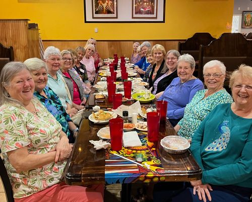 Dining Out Together generally alternates months with the Ladies’ Lunch. Dinner is planned at local restaurants or one of The Villages’ Country Clubs, often in a private room. Seating at tables of 8 or fewer is common and encourages lively conversation. Couples and singles are welcome. Carolyn Lindgren and Brent Morrow make the arrangements and takes your reservation. Watch the church calendar for upcoming dining opportunities.